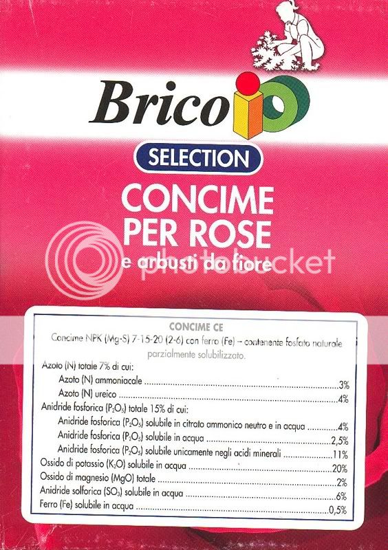 l'altro giorno al Brico, ho trovato un concime granulare per rose 7-15-20 con Magnesio e Ferro.. se faccio un misto del 20-10-10 a lenta cessione che già ho e questo, pensate che può andar bene?